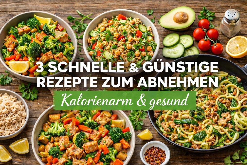 Abnehmen muss weder teuer noch kompliziert sein. Mit einfachen Zutaten, kurzen Zubereitungszeiten und ausgewogenen Rezepten kannst du effektiv Kalorien sparen, ohne auf Geschmack zu verzichten. Die folgenden 3 schnellen und günstigen Rezepte zum Abnehmen sind ideal für den Alltag: wenig Aufwand, gut sättigend und perfekt für eine kalorienbewusste Ernährung. Alle Gerichte lassen sich in unter 30 Minuten zubereiten und bestehen aus preiswerten Lebensmitteln, die du in jedem Supermarkt findest.