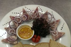 Selbstgemachte Sülze mit einem selbst zubereiteten Dressing schmeckt am besten