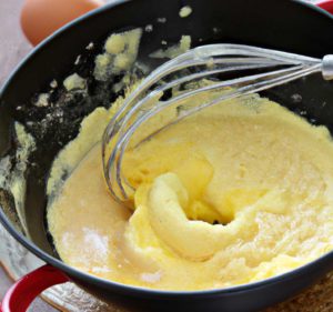 - Zuerst gebt ihr die Eier, selbstverständlich aufgeschlagen, in eine Schüssel und verrührt sie gut miteinander.