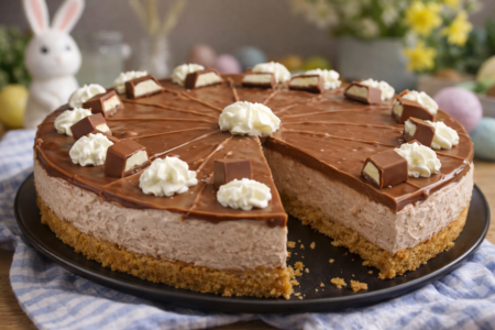 Diese Kinderriegel-Torte ohne Backen ist genau das Richtige, wenn Sie zu Ostern oder einem anderen festlichen Anlass ein unkompliziertes, aber beeindruckendes Dessert servieren möchten. Der Fokus liegt klar auf dem intensiven Geschmack von Kinderschokolade, kombiniert mit einer luftigen Creme und einem stabilen Keksboden.