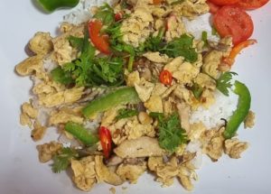 - Zuerst wird das Gemüse, einschließlich den Kräuterseitlingen geschnitten.