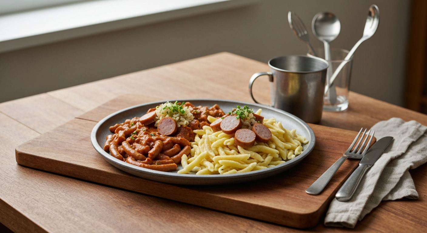 Linsen mit Spätzle (auch süß-saure Linsen genannt) findet man in vielen Restaurants in ganz Schwaben, sie sind ein beliebtes Gericht in vielen Kantinen und gehören zu den beliebtesten Gerichten in schwäbischen Haushalten. Einfach zuzubereiten, sättigend und köstlich – es ist leicht zu verstehen, warum es praktisch ein Grundnahrungsmittel der schwäbischen Küche ist.