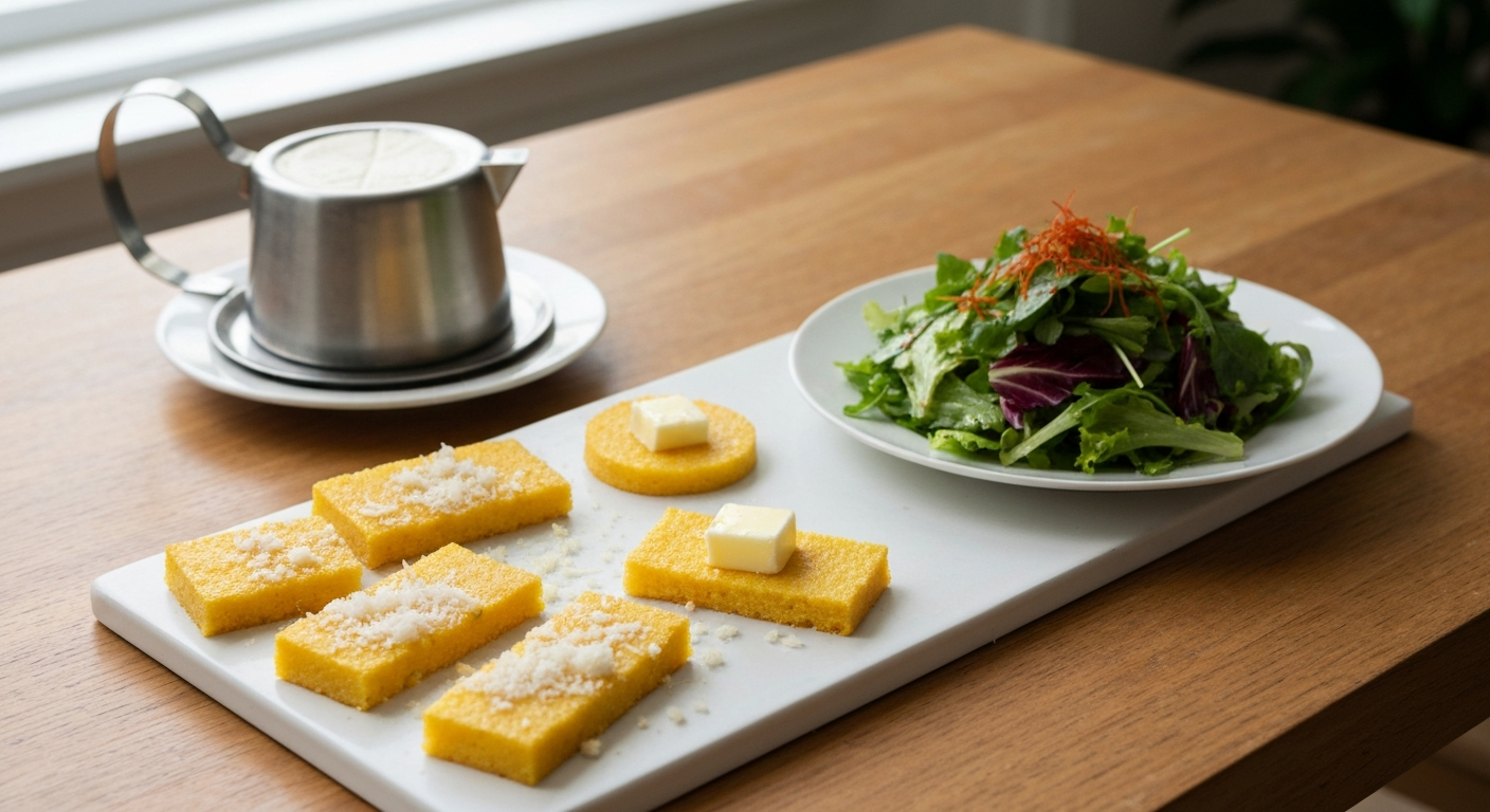 Thermomix® Parmesan Polenta Rauten mit Salat