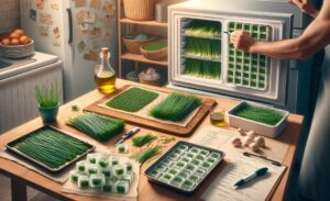 Schritt 3: Schnellgefrieren – Legen Sie den Schnittlauch auf einer ebenen Fläche für etwa 10-15 Minuten in den Gefrierschrank, bis er fest ist.